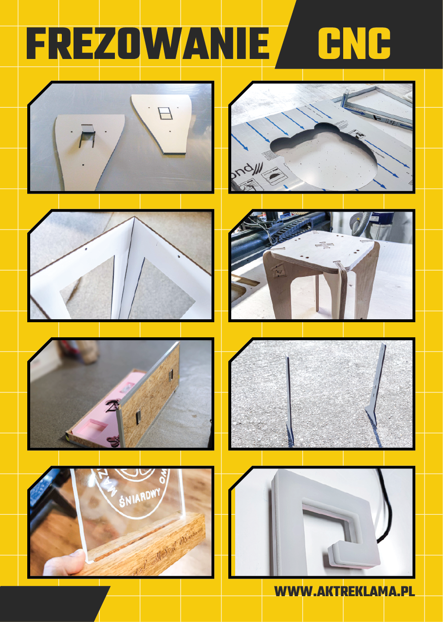 HPL • DREWNO • SKLEJKA • PŁYTY MEBLOWE • PVC (PCW) • PIANKA • KOMPOZYT ALUMINIOWY (DIBOND) • SZKŁO AKRYLOWE (PLEXI) • INNE MATERIAŁY ‘MIĘKKIE’